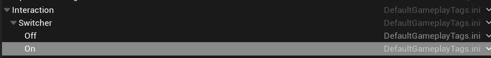 Next, create two gameplay tags: Interaction.Switcher.On and Interaction.Switcher.Off.
