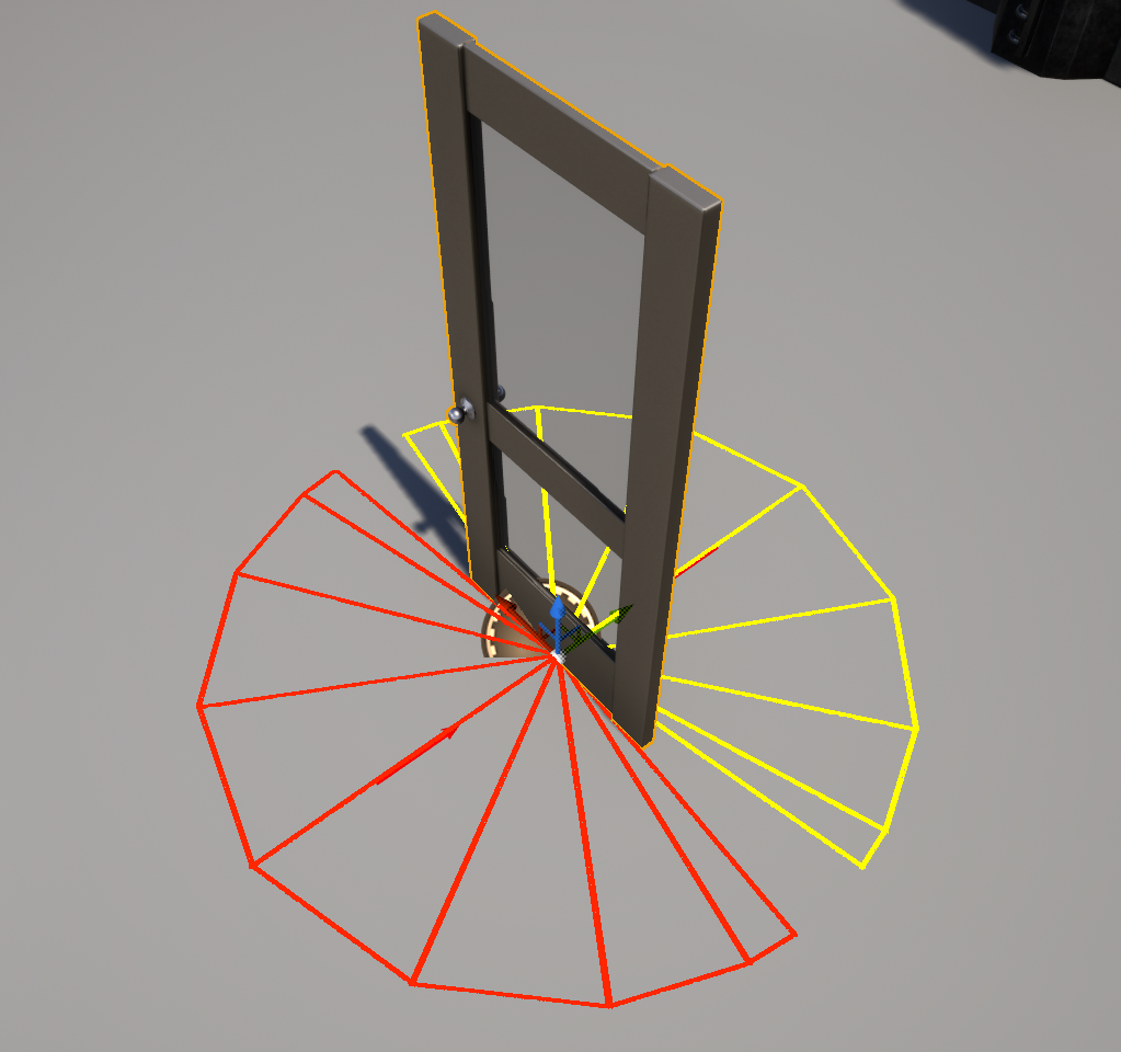 Taking a door as an example - it has 2 sides for interaction - front and back, with specific settings of available angles. Interaction from one side will open the door towards oneself, and from the other side, away from oneself.