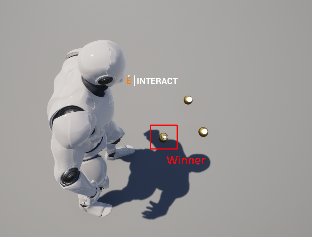 What is the result? Now, if you add this test to your character for interaction, the closest object to the character will become available for interaction, rather than some random object.